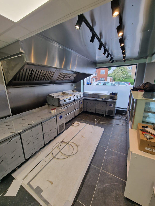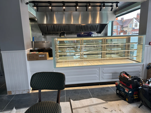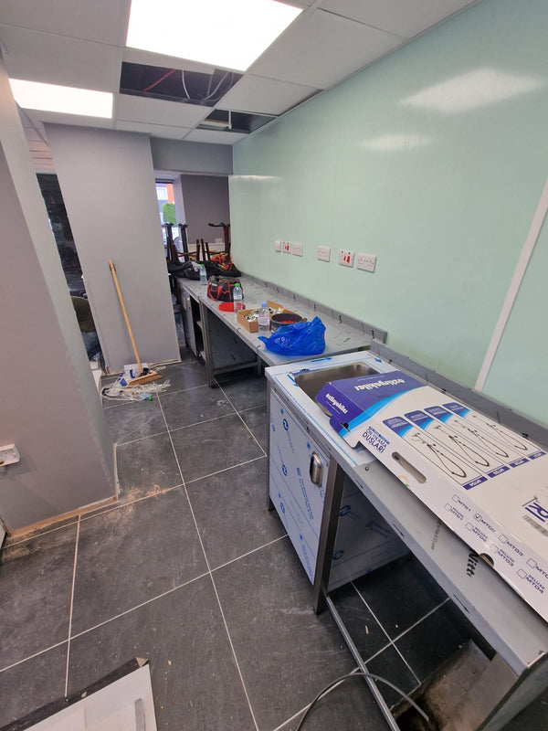 We completed a full A-to-Z fit-out, including a custom white display fridge and counter, full electrical and plumbing installation, and a complete kitchen setup.