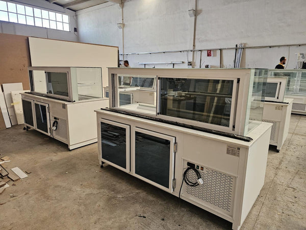 Fridges World removed and disposed of the old units, redesigned the shopfront for outdoor service, and prepared a new counter for the coffee section. We installed our premium Fridges World bespoke display fridges with integrated cold storage underneath, creating a modern, efficient and customer-friendly café area.